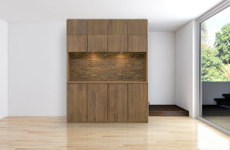 サイズ[cm]外寸:幅170×奥行40.5×高さ197cm上置:幅170×奥行40×高さ25-60cmオーダー可能材質本体:クリーンイーゴスシート前板:ウォールナット無垢材LED定格電圧:AC100V/定格消費量:約1.4W/LED寿命:約40000時間商品説明・開戸には収納の邪魔にならない埋め込み式のプッシュオープンと耐震ラッチを採用しました。