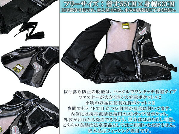◇抜け落ち防止の股紐は、バックルでワンタッチ装着タイプ◇ファスナーが大きく開く大容量ポケット×2◇小物の収納に便利な胸ポケット×2◇夜間でもライトで目立つ反射材が肩部に付いてます。